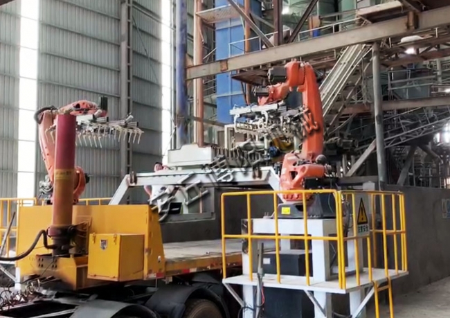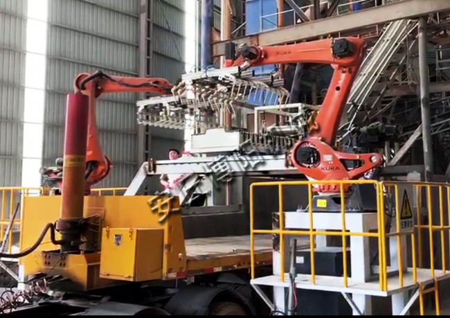 袋料裝車機(jī)器人 自動(dòng)裝車機(jī)現(xiàn)場(chǎng)