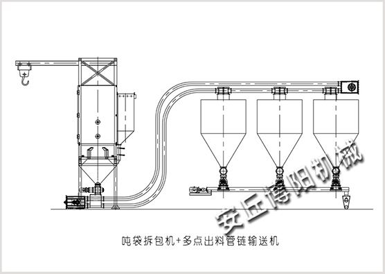 噸袋拆包機(jī)+多出料口管鏈輸送機(jī)方案